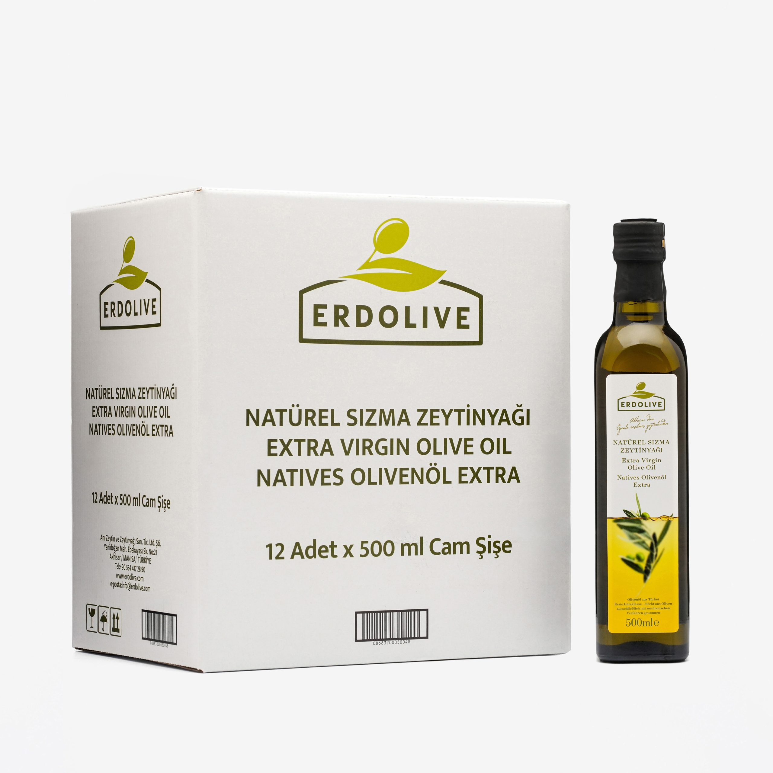 12×500 ml Cam Erdolive Natürel Sızma Zeytinyağı