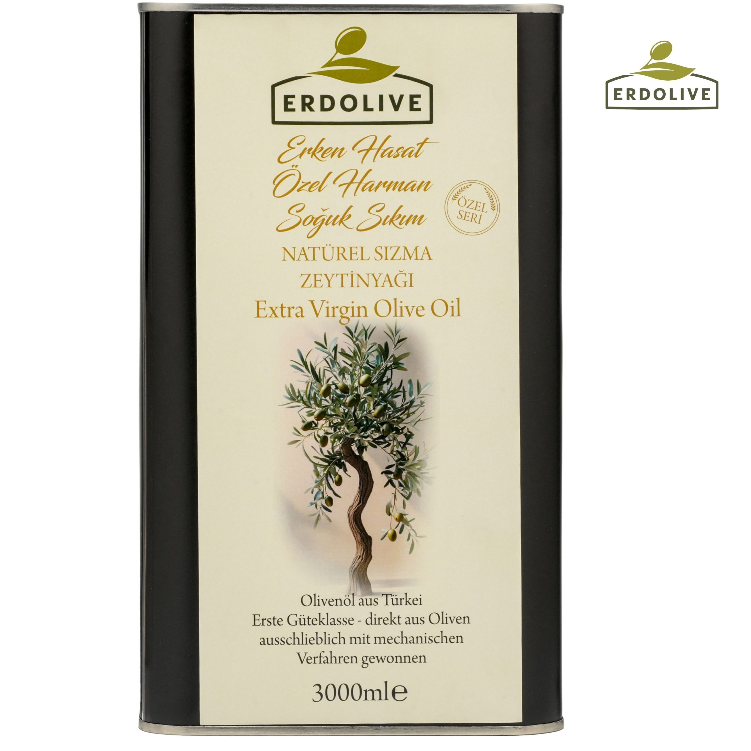 Erdolive 3 Litre Teneke Özel Harman Erken Hasat Soğuk Sıkım Zeytinyağı, farklı zeytin çeşitlerinin dengeli bir uyumla harmanlanmasıyla elde edilmiş; zengin lezzet profili ve yüksek besin değeriyle öne çıkan özel bir üründür.
